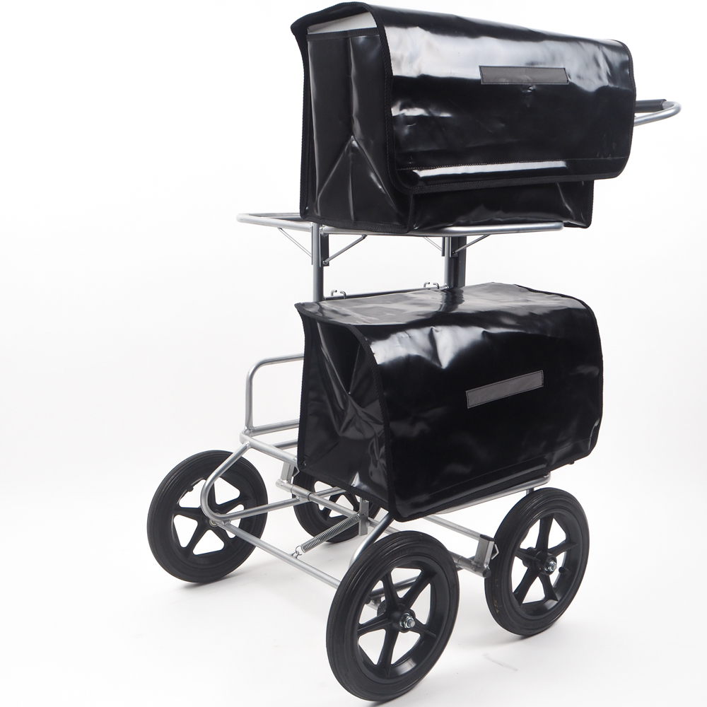 ✅ Voorzien van: vier waterdichte posttassen, handrem en in hoogte verstelbare duwbeugel met koudweerhandgreep